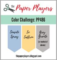 I have a card to share today for Jaydee's color challenge for this week's Paper Players challenge. The colors are So Saffron, Seaside Spray and Gray Granite as the "neutral." I've chosen to use brown as a neutral shade for my card.