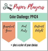 I realized last night that I hadn't made a card for this week's Paper Players Challenge, so after dinner I sat down to remedy that. This week Anne has a very pretty color challenge of Pool Party, Daffodil Delight, Grapefruit Grove, and a color of our choice. I decided on Pretty In Pink and along with some new stamps, dies and stencils from Concord & 9th, made a couple of cards. This first one uses Jen M's sketch at Freshly Made Sketches.